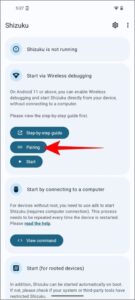 4. Στη συνέχεια, πατήστε Σύζευξη συσκευής με κωδικό σύζευξης. Το Shizuku θα εμφανιστεί αυτόματα – εισαγάγετε τον κωδικό ζεύξης που εμφανίζεται στην οθόνη σας.